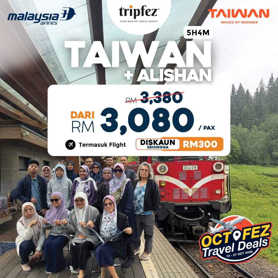 Taiwan, Taiwan Alishan TAIWAN + ALISHAN (5 Hari 4 Malam) Flights Included Halal Meals Hotel / Resort Insurance and VISA Starting From: MYR 3380.00